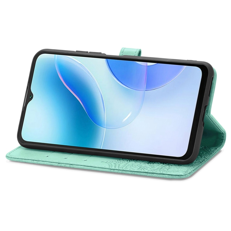 Funda para BlackView A53 Mandala Flower Caja de Teléfono Cuero en Relieve (Verde)