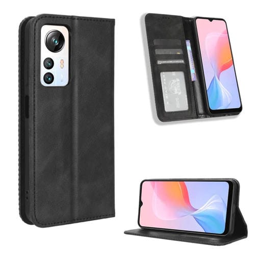 Funda de Cuero para BlackView A85 con Hebilla Magnética y Textura Retro (Negro)