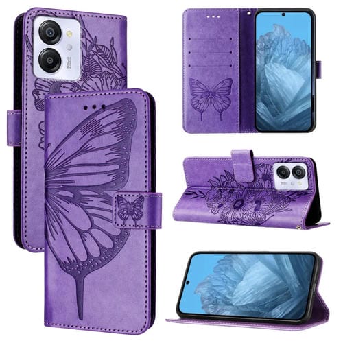 Funda de Cuero para BlackView Color 8 con Mariposa en Relieve (Púrpura)