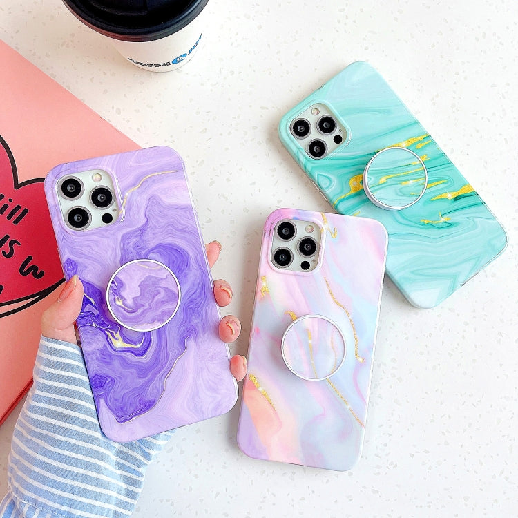 Estuche de TPU Mármol Acristalado iPhone 11 Pro Max con Soporte Plegable (Blanco)