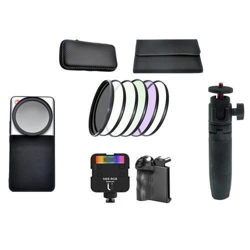 Juego 10 en 1: estuche para teléfono, caja de almacenamiento, CPL, negro suave 1/4+1/8, blanco suave, mango de zoom, trípode, luz de relleno, UV, bolsa de almacenamiento con filtro a prueba de polvo