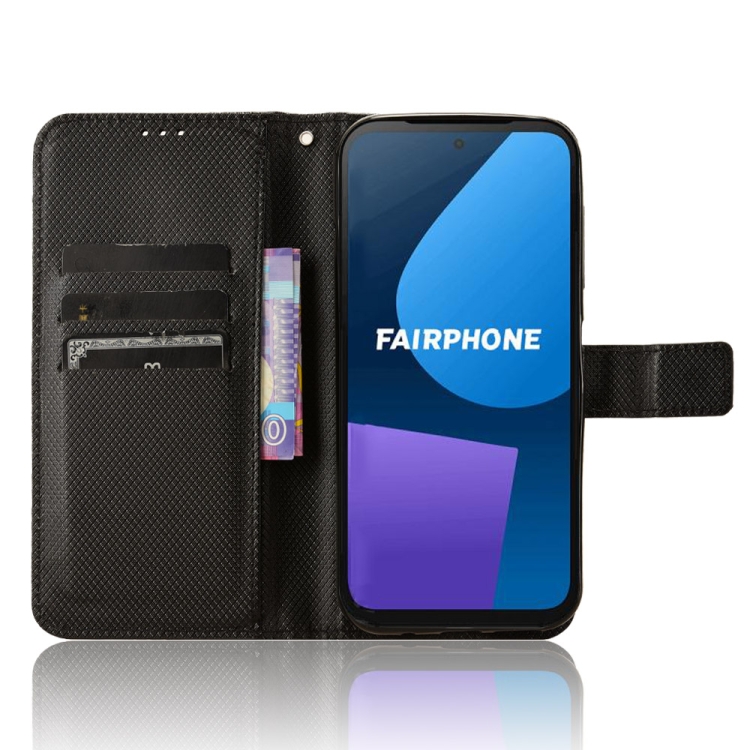 Funda de Cuero para Fairphone 5 con Textura de Diamante (Negro)