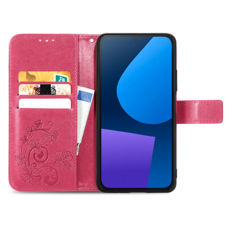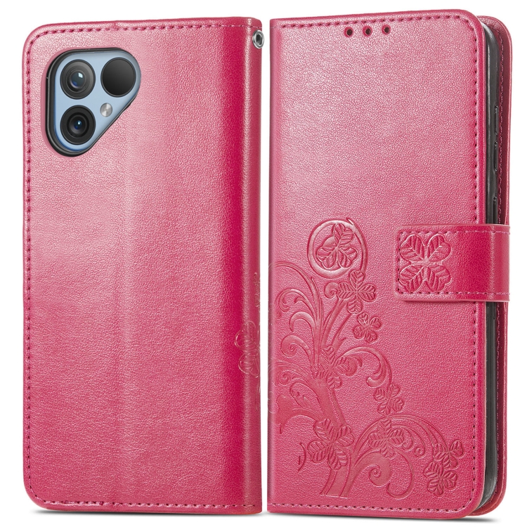 Funda de Cuero Repujado para Fairphone 5 con Cierre de Cuatro Hojas (Rojo)