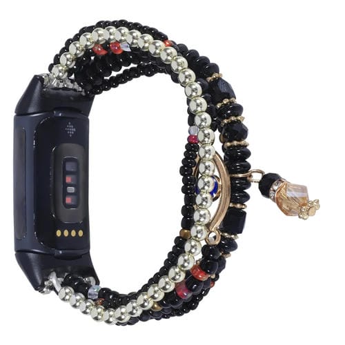 Correa para Fitbit Charge 5 Eye Bead Chain Watch Band (Negro)