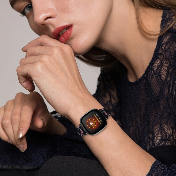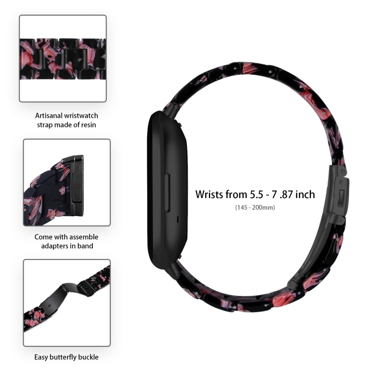 Pulsera Universal Resin para Fitbit Versa 3 y Sense (Black Pink Flower)