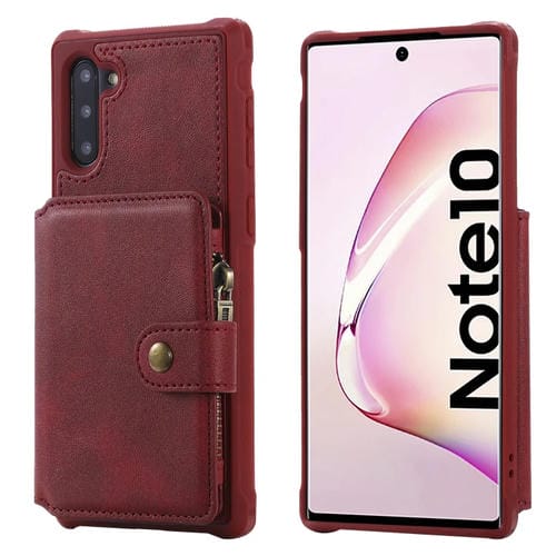 For Galaxy Note 10 Shockproof Zipper Protective Case with Card Slots & Kickstand & Photo Holder & Wallet Function (Red)