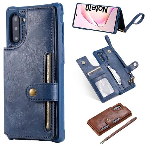 Estuche Protector Galaxy Note 10 con Cremallera Hebilla Soporte Ranuras Tarjetas Billetera Cordón Marco Fotos (Azul)