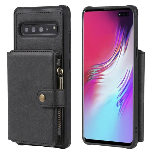 Estuche Protector Galaxy S10 5G con Cremallera Ranuras Tarjetas Soporte Fotos Billetera (Negro)