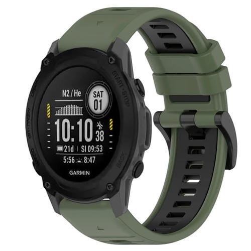 Correa 22mm Silicona para Garmin Descent G1 Sports (Verde Oliva + Negro)