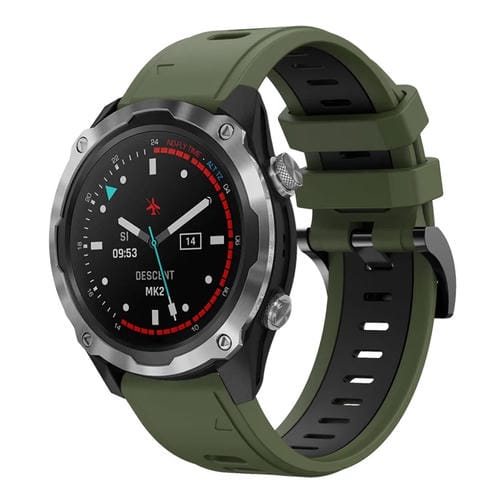Banda de Reloj Garmin Descent Mk 2 26mm Silicona Deportiva Dos Colores (Verde Militar + Negro)