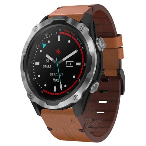 Correa de Reloj para Garmin Descent Mk 2 con Hebilla de Acero y Cuero 26mm (Marrón)