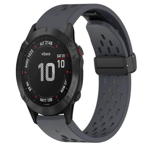 Correa de Silicona para Garmin Fenix 6 Pro GPS con Orificio y Hebilla Plegable 22mm (Gris Oscuro)