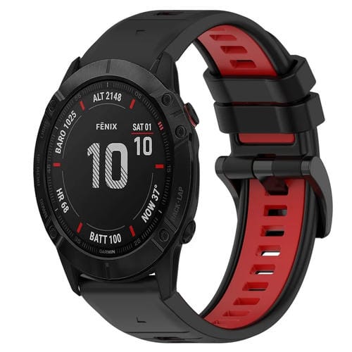 Correa para Garmin Fenix 6X Sapphire 26mm Silicona Deportiva Bicolor (Negro + Rojo)