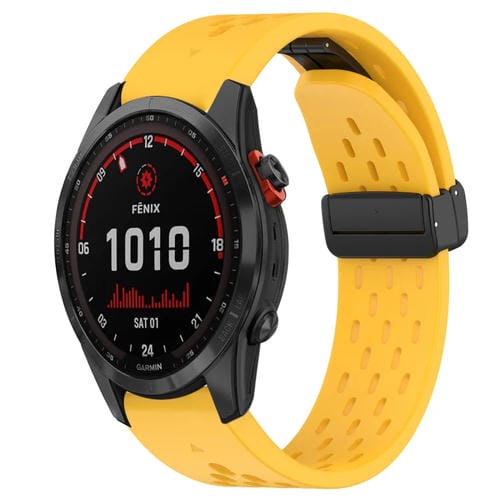Correa de Reloj silicona para Garmin Fenix 7 Solar 22mm con orificio y hebilla plegable (Amarillo)