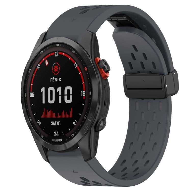 Correa de Reloj de Silicona para Garmin Fenix 7 Solar 22mm con Orificio y Hebilla Plegable (Gris Oscuro)