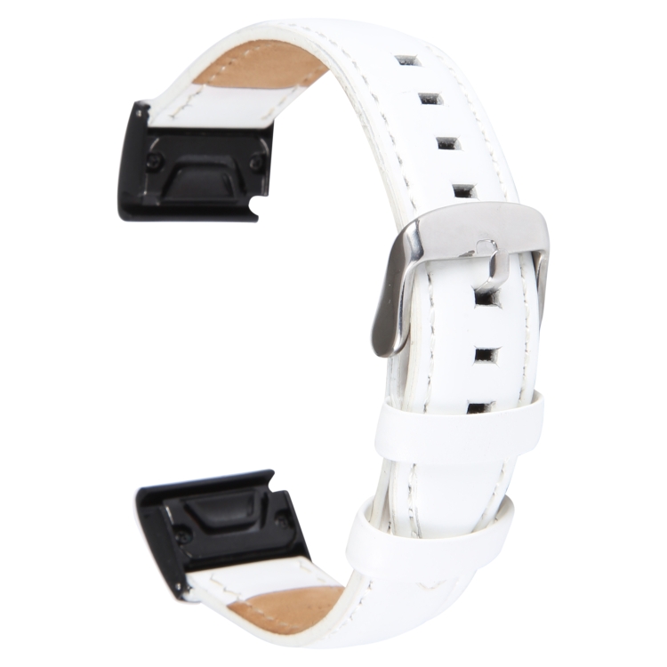 Correa de Reloj para Garmin Fenix 7S Cuero Genuino Tejido Liso 20mm (Blanco)