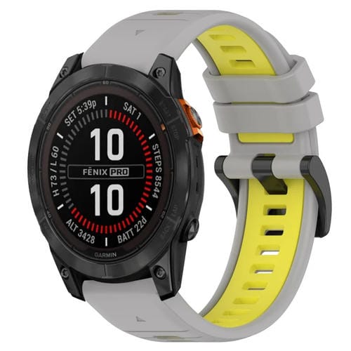 Correa deportiva silicona para Garmin Fenix 7S Pro 42mm 20mm (Gris + Amarillo)
