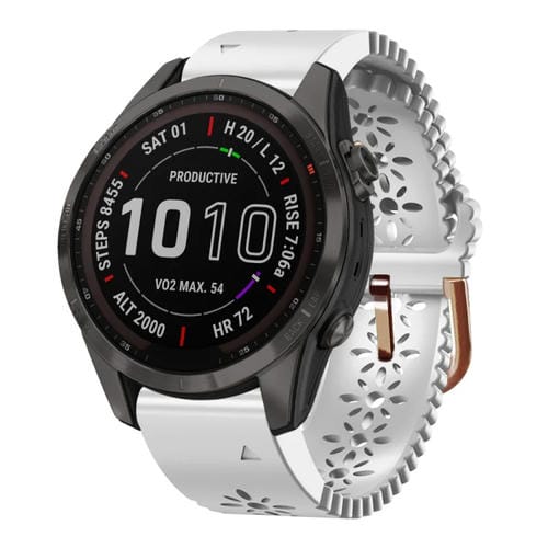 Correa de Silicona para Garmin Fenix 7S Sapphire Solar 20mm para Mujer con Punzón de Encaje (Blanco)