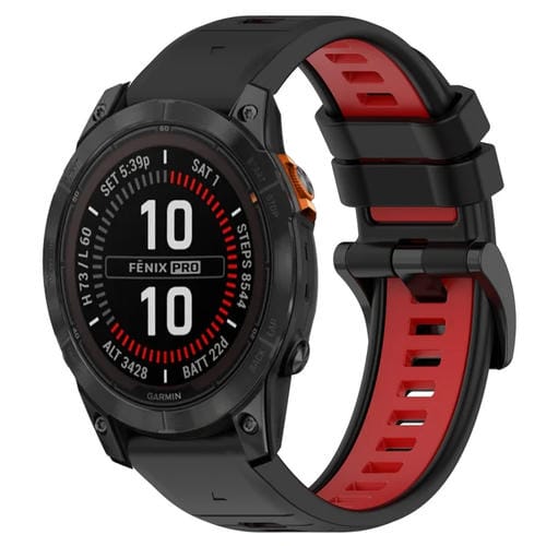 Correa para Garmin Fenix 7S Sapphire Solar 20mm Silicona Deportiva Bicolor (Negro + Rojo)
