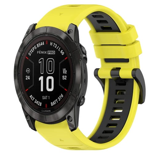Correa Silicona para Garmin Fenix 7X Pro 51mm 26mm Sports Dos Colores (Amarillo + Negro)