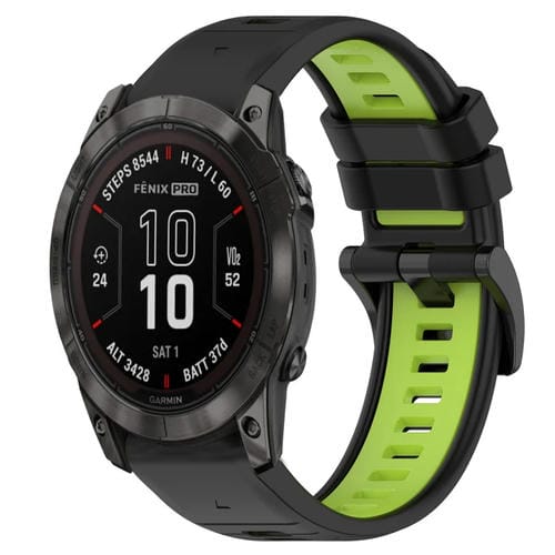Correa para Garmin Fenix 7X Pro 51mm 26mm Sports Silicona Bicolor (Negro + Verde Lima)