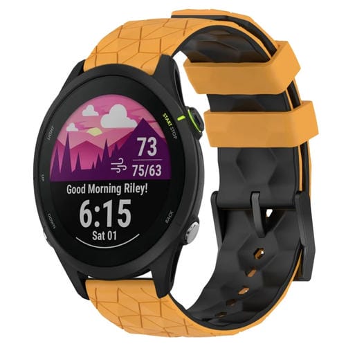 Banda de Reloj silicona para Garmin Forerunner 255 Music 22mm patrón fútbol (Amarillo + Negro)