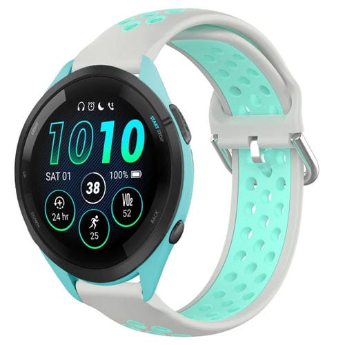 Banda de Reloj para Garmin Forerunner 265 Music 22mm Silicona Deportiva Perforada (Gris + Pato de Agua)