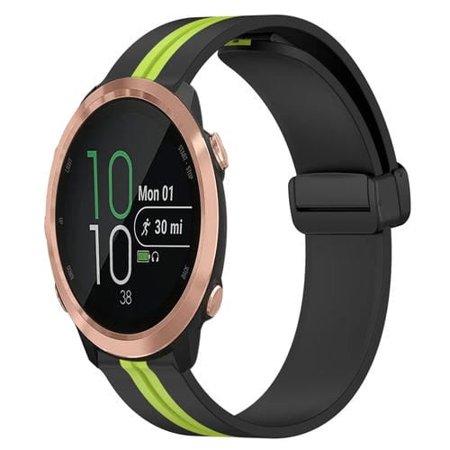 Correa de Reloj para Garmin Forerunner 645 Music 20mm Silicona con Cierre Magnético Plegable (Negro + Verde Lima)