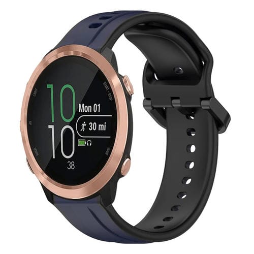 Banda de Reloj para Garmin Forerunner 645 Music de Silicona Dos Colores con Bucle Convexo 20mm (Azul Medianoche + Negro)