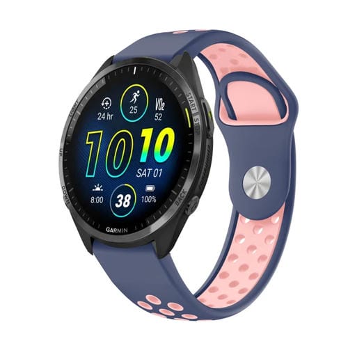 Banda de Reloj de Silicona para Garmin Forerunner 965 22mm Deportes (Azul Medianoche + Rosa)