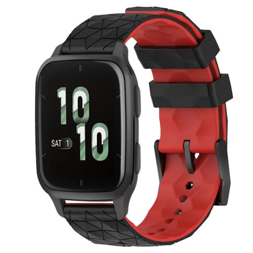 Banda de Reloj Garmin Forerunner Sq2 20mm Silicona Patrón de Fútbol (Negro + Rojo)