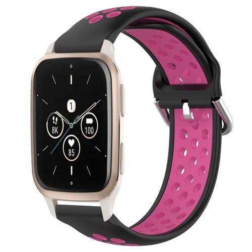 Banda de Reloj Silicona Deportiva para Garmin Forerunner Sq2 Music 20mm (Negro + Rojo Rosa)