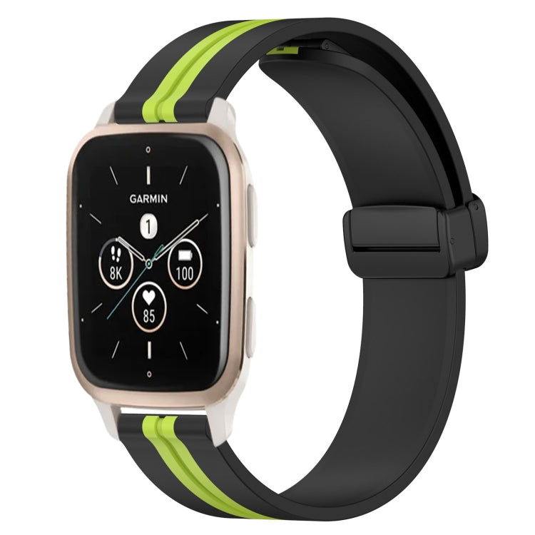 Correa de Reloj Garmin Forerunner Sq2 Music 20mm silicona cierre magnético plegable (Negro + Verde Lima)