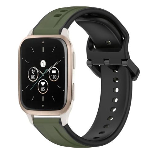 Banda de Reloj Silicona para Garmin Forerunner Sq2 Music 20mm (Verde Oscuro + Negro)