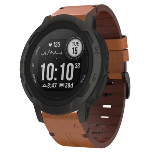 Correa de Reloj para Garmin Instinct 2 con Hebilla de Acero y Cuero 22mm (Marrón)
