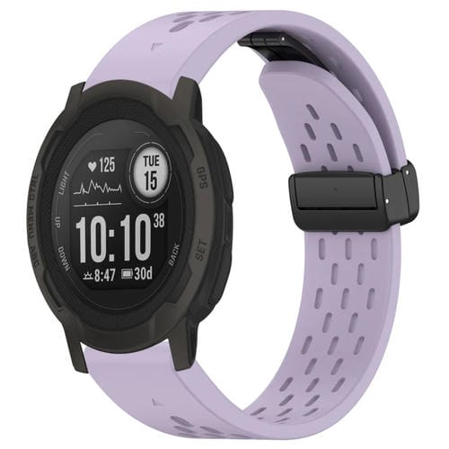 Correa de Silicona para Garmin Instinct 2 / Instinct con Hebilla Plegable Magnética y Orificios 22mm (Púrpura)