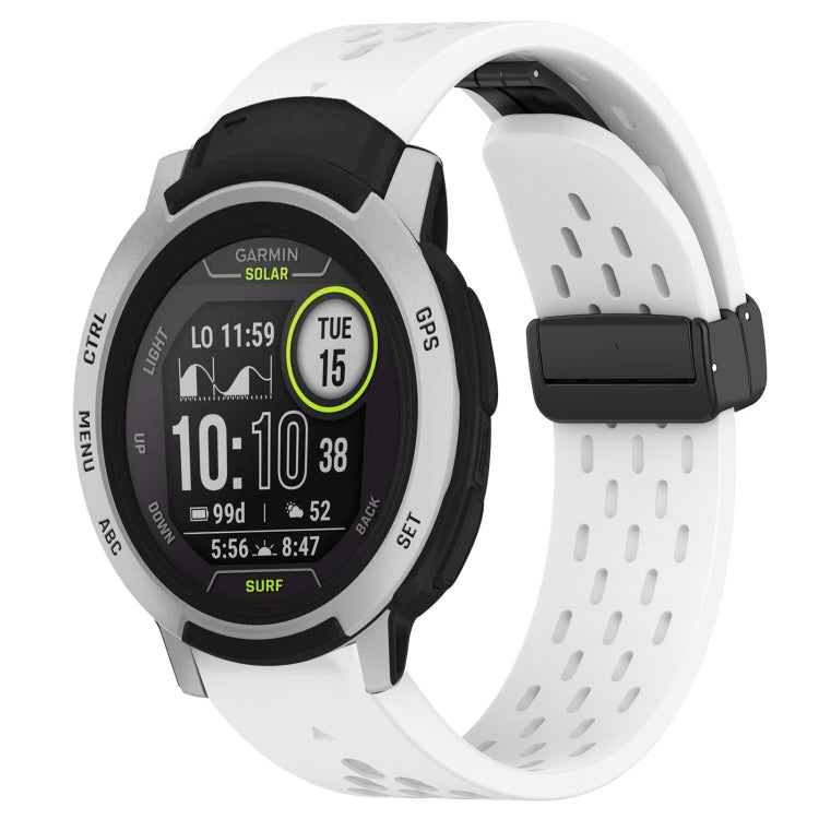 Correa de Reloj de Silicona para Garmin Instinct con Orificio y Hebilla Plegable de 22mm (Blanco)