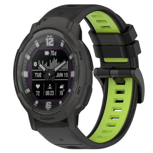 Correa de Silicona Deportiva 22mm para Garmin Instinct Crossover (Negro + Verde Lima)