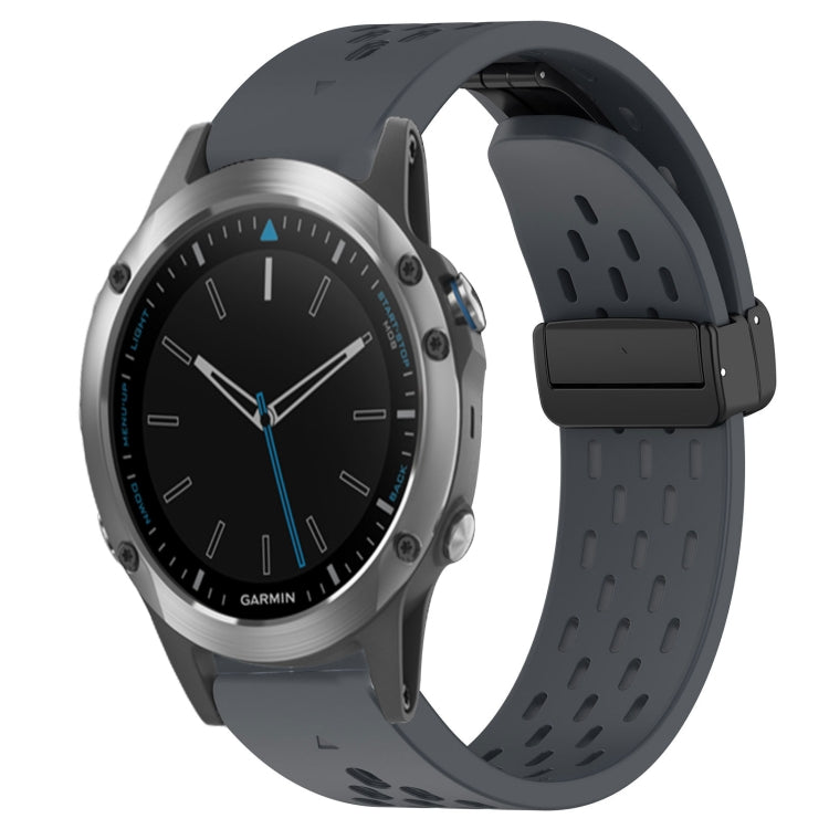 Correa de Reloj Garmin Quatix 5 Zafiro Silicona con Orificio Hebilla Plegable 22mm (Gris Oscuro)