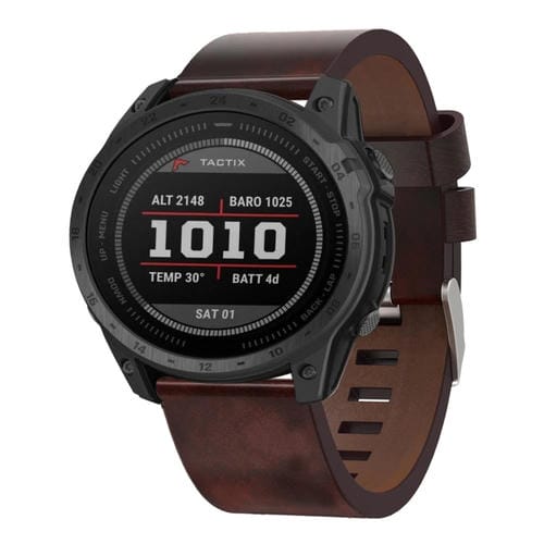 Correa de Reloj para Garmin Tactix 7 26mm con Hebilla de Acero y Cuero (Marrón)