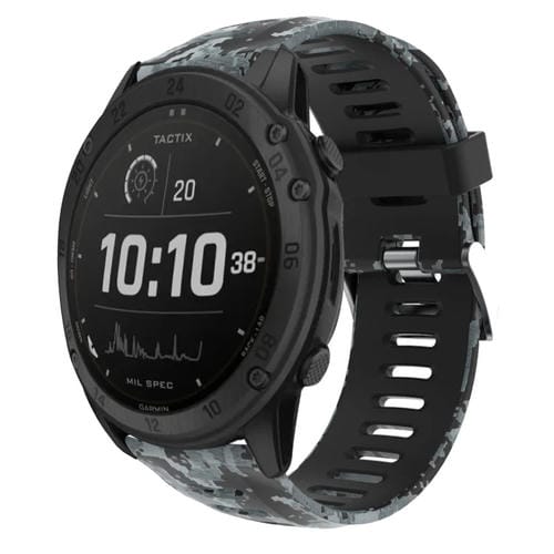 Correa de Reloj Silicona para Garmin Tactix Delta 26mm con Estampado Camuflaje (Negro + Camuflaje Digital)