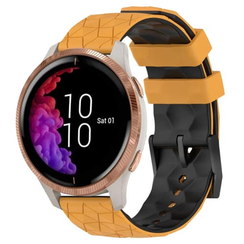Banda de Reloj para Garmin Venu 20mm Patrón de Fútbol Silicona Dos Colores (Amarillo + Negro)