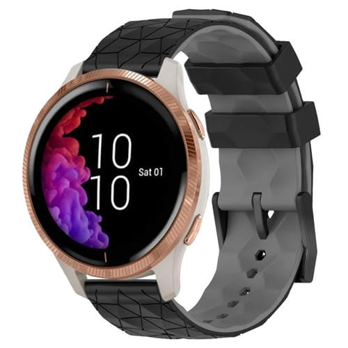Banda de Reloj Garmin Venu 20mm Silicona Dos Colores Patrón de Fútbol (Negro + Gris)