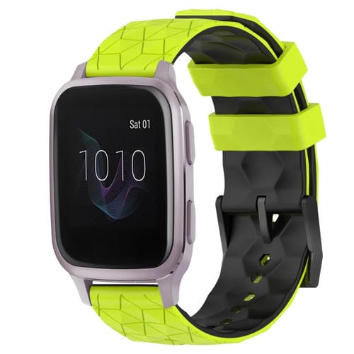 Banda de Reloj para Garmin Venu Sq 20mm patrón de fútbol silicona dos colores (Verde Lima + Negro)