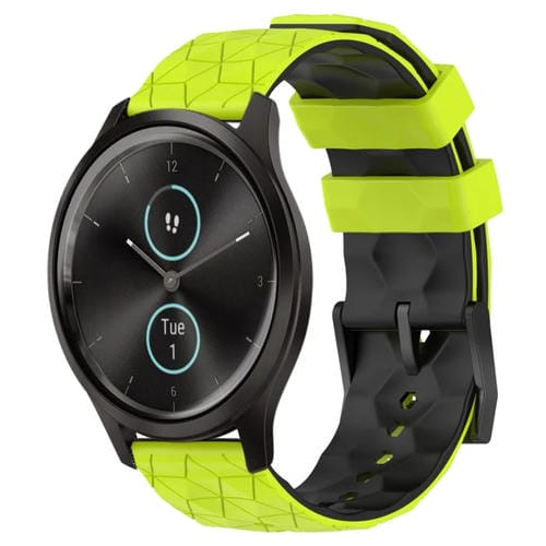 Banda de Reloj silicona Garminmove Style 20mm patrón fútbol (Verde Lima + Negro)