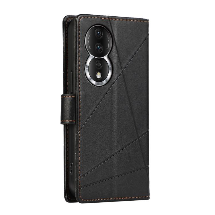 Funda para Honor 80 con Línea en Relieve y Textura de Cuero Genuino PU (Negro)