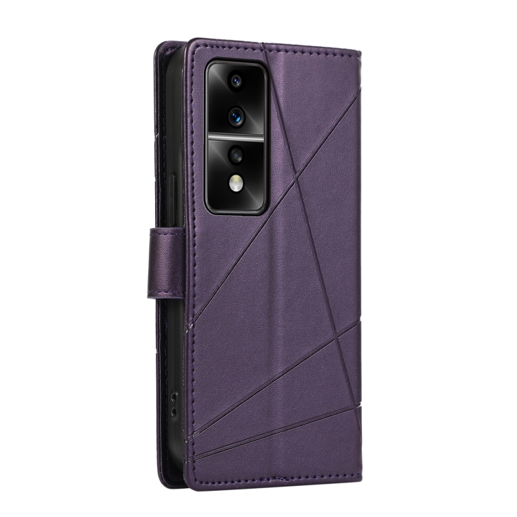 Funda para Honor 80 GT PU con Línea en Relieve y Textura de Cuero Genuino (Púrpura)