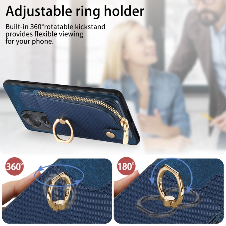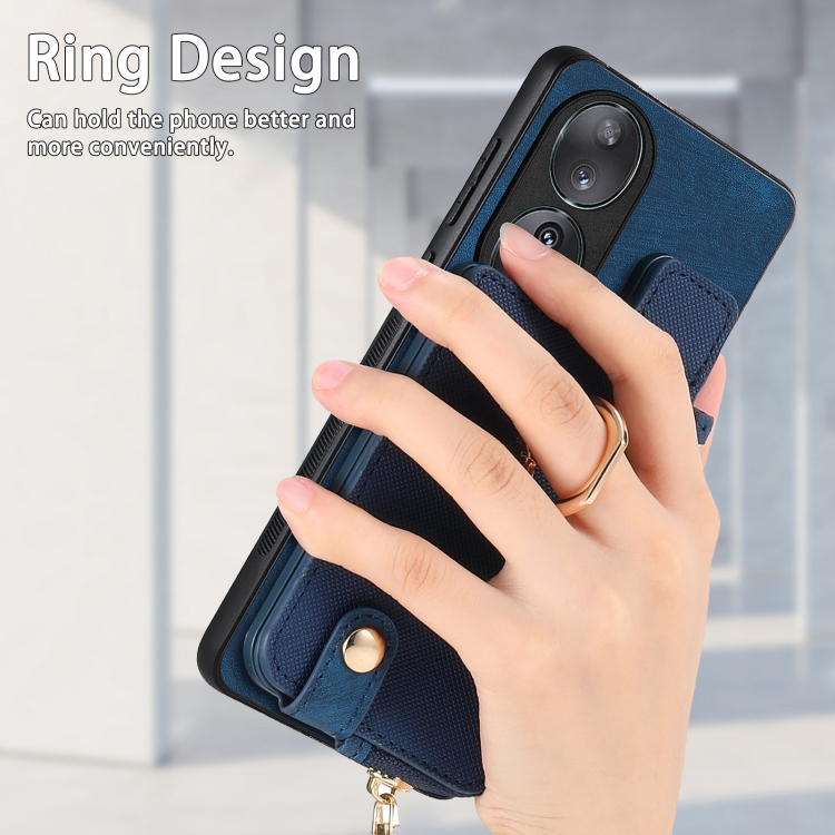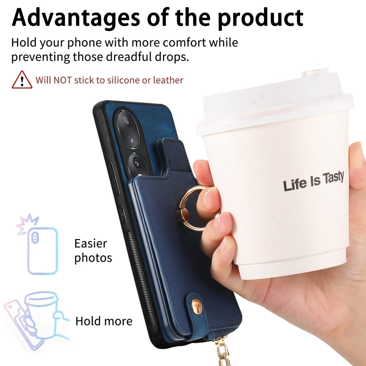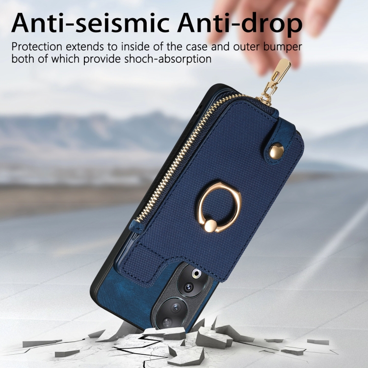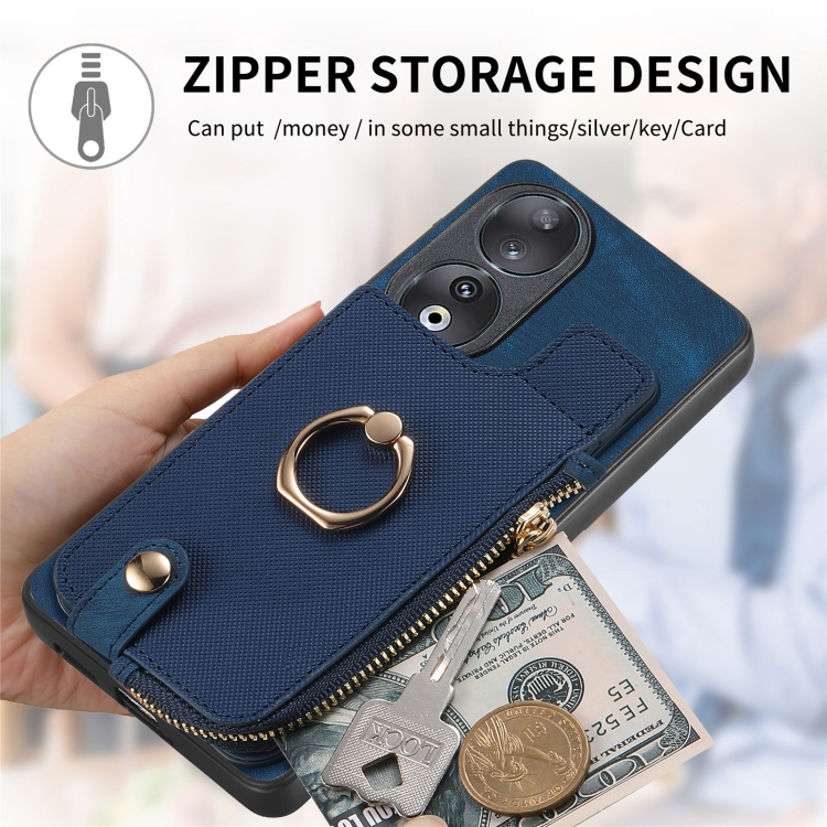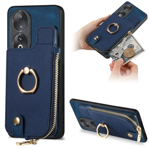 Funda para Honor 90 con Anillo de Cuero Cruzado, Cremallera Vertical y Billetera (Azul)