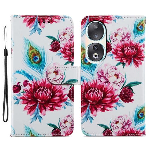 Funda para Honor 90 de Cuero con Tapa Horizontal y Patrón Pintado (Flor de Pavo Real)