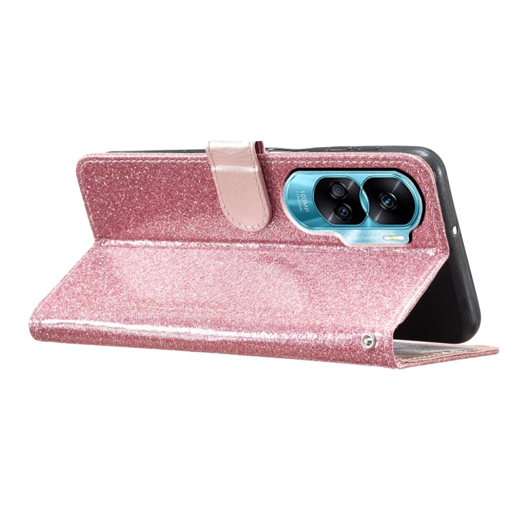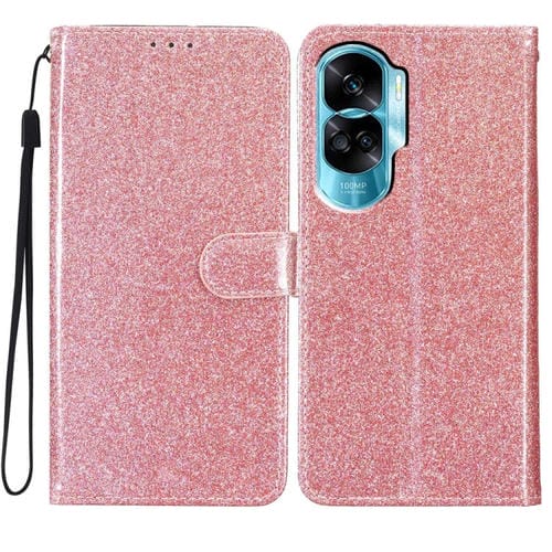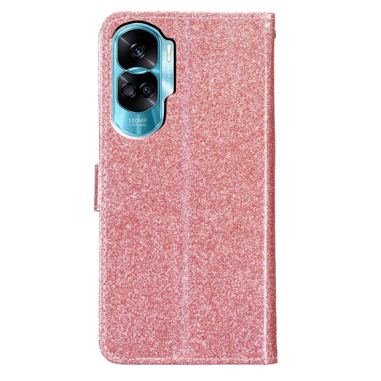 Funda de Cuero con Tapa para Honor 90 Lite con Purpurina en Polvo (Oro Rosa)